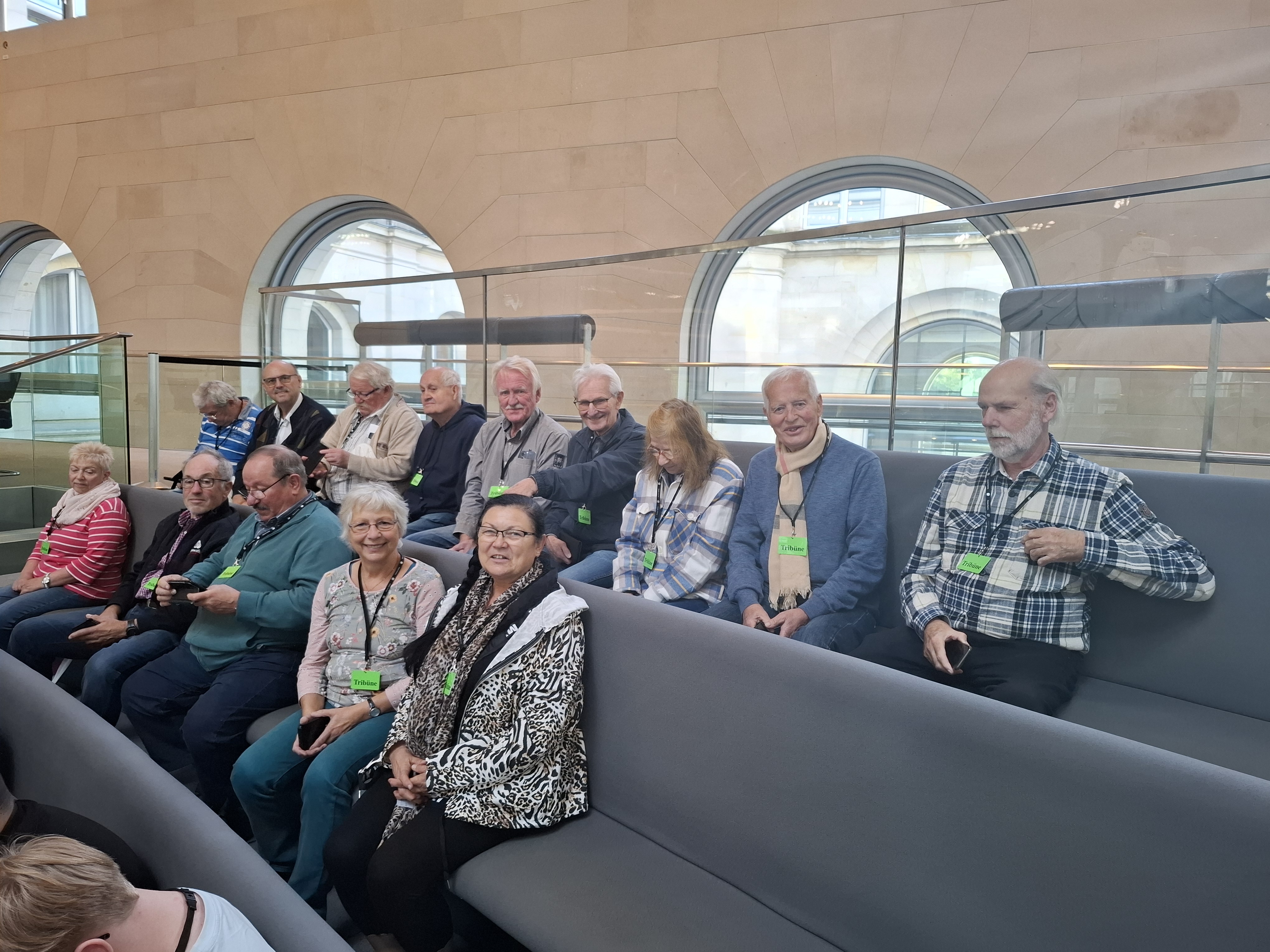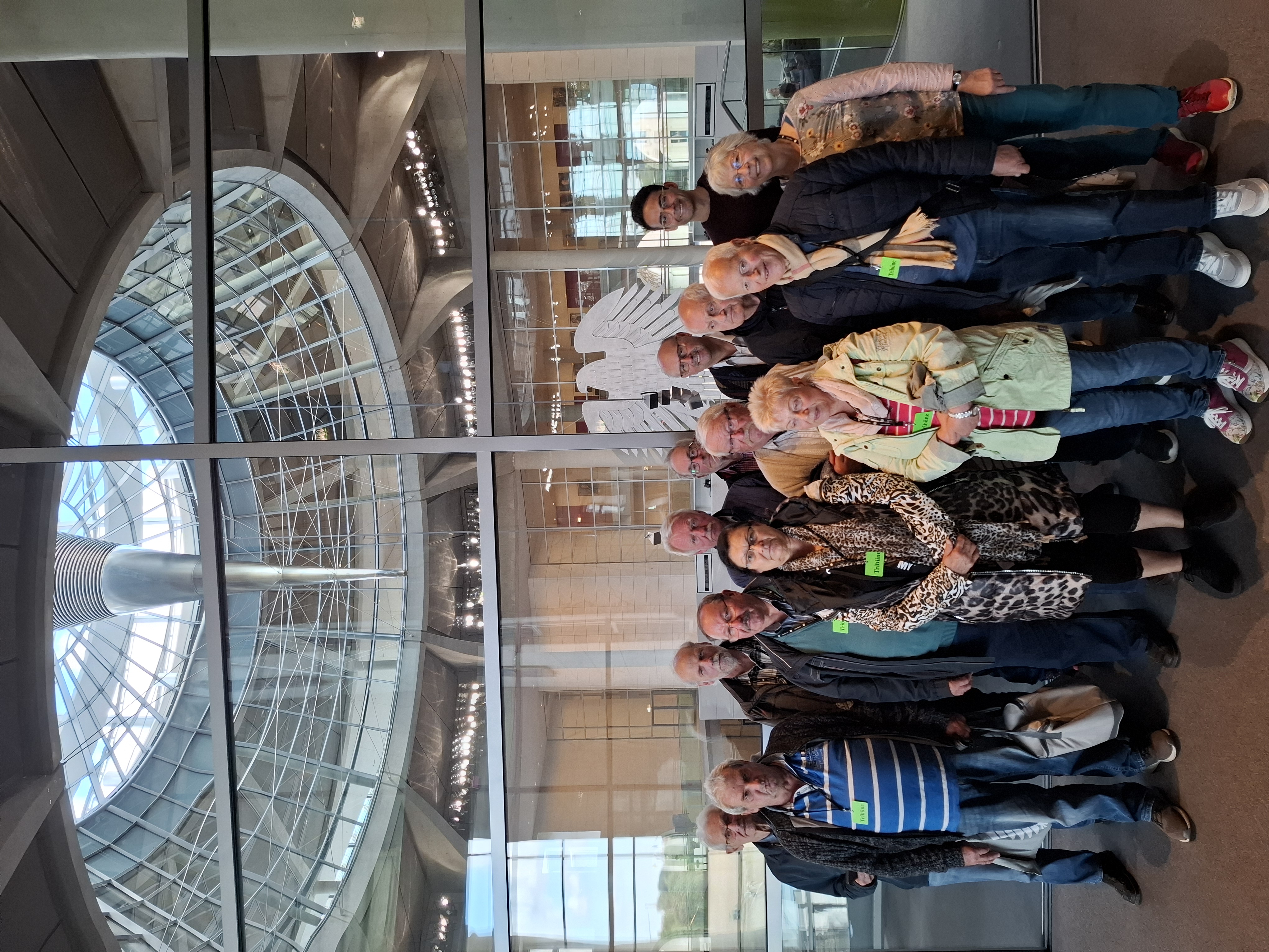 Am 30. September 2025 besuchte die Seniorengruppe der IG Metall Rostock-Schwerin den Deutschen Bundestag. Nach den Sicherheitskontrollen erhielten die Teilnehmenden auf der Besuchertribüne des Plenarsaals einen informativen Vortrag über das Reichstagsgebäude, seine Architektur und die Funktionsweise des Bundestags. Themen waren u.a. die Anzahl der Abgeordneten (630), die Beschäftigtenzahl (10.000) und die Geschichte der Glaskuppel.
