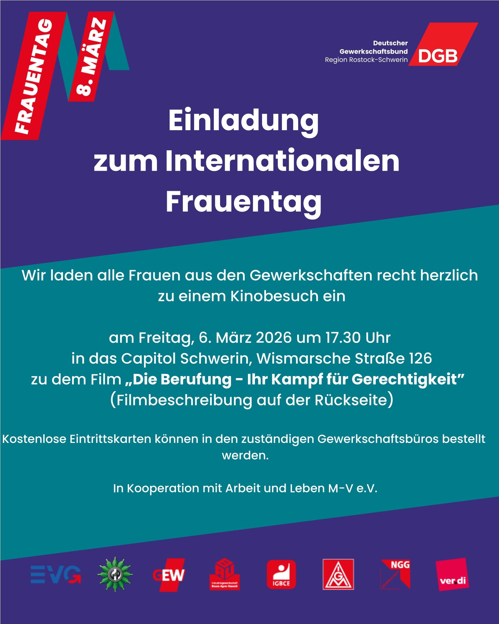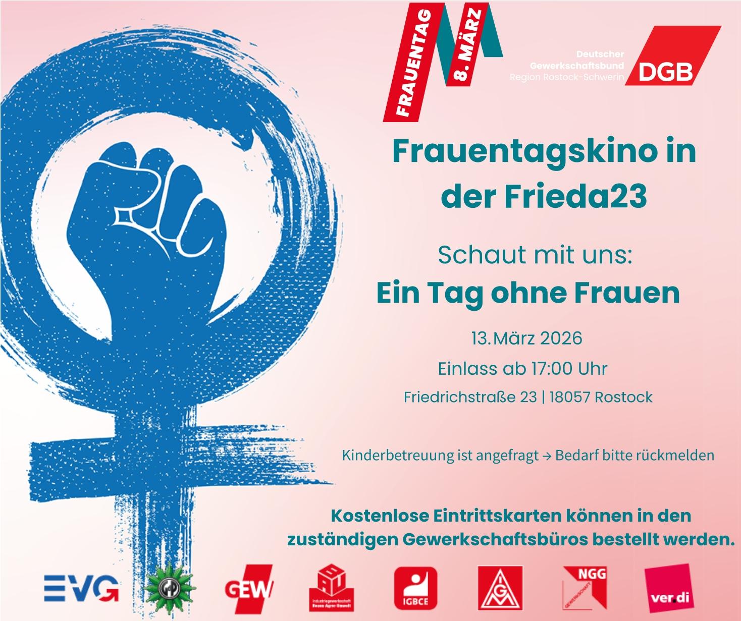 Anmeldungen für die Kinokarten gerne über folgenden Link: Frauentagsveranstaltung 2026 Schwerin – Formular ausfüllen