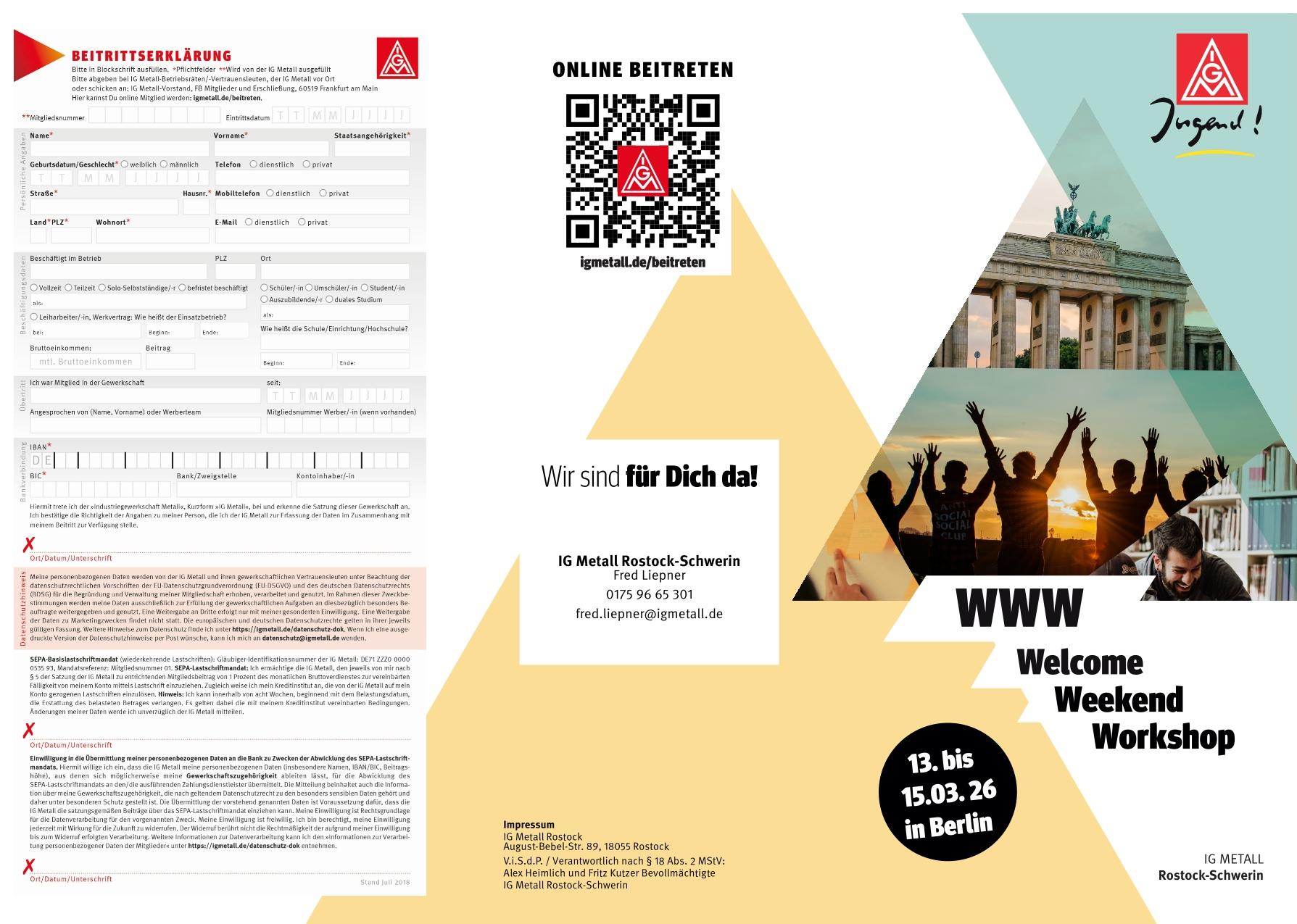 Du bist noch kein Mitglied, dann trete online bei: https://www.igmetall.de/mitglieder/mitglied-werden?