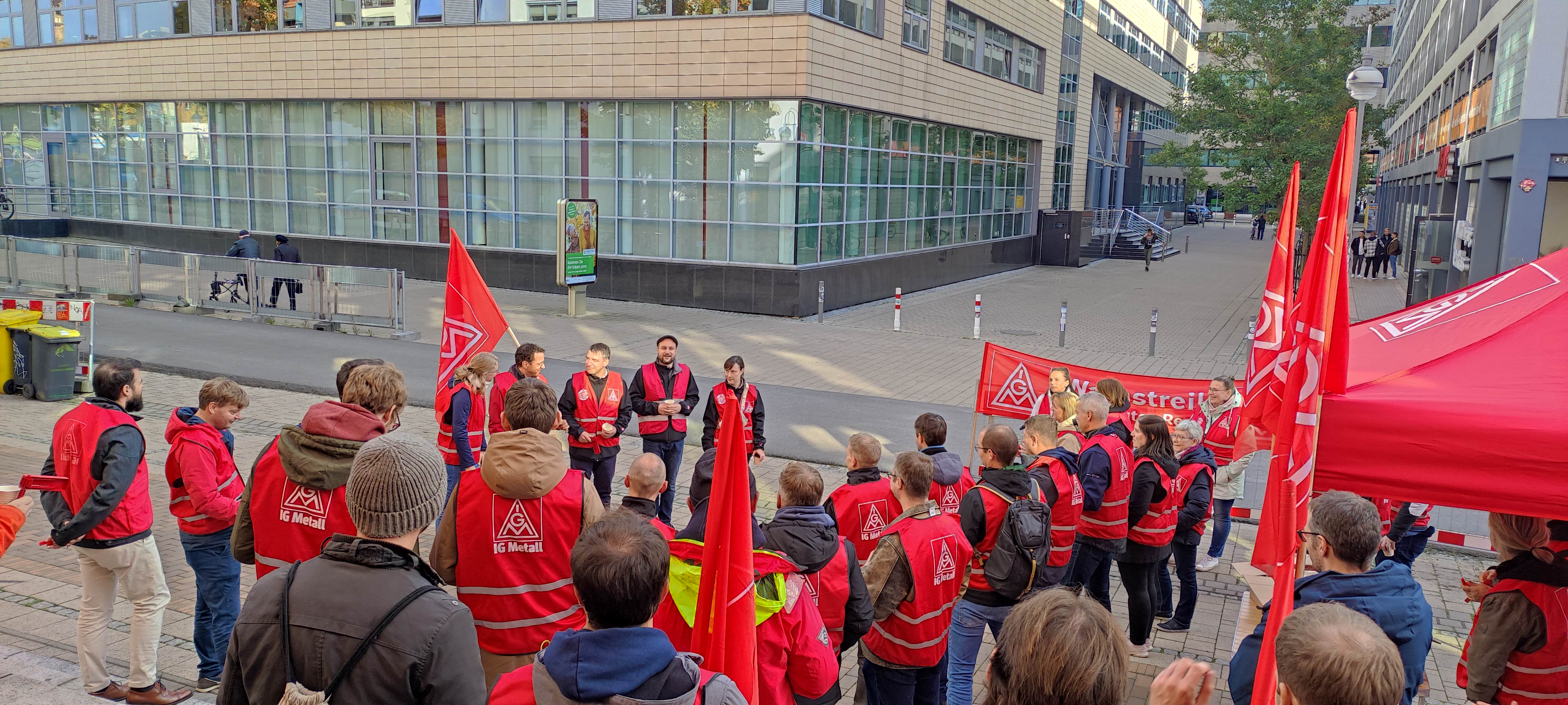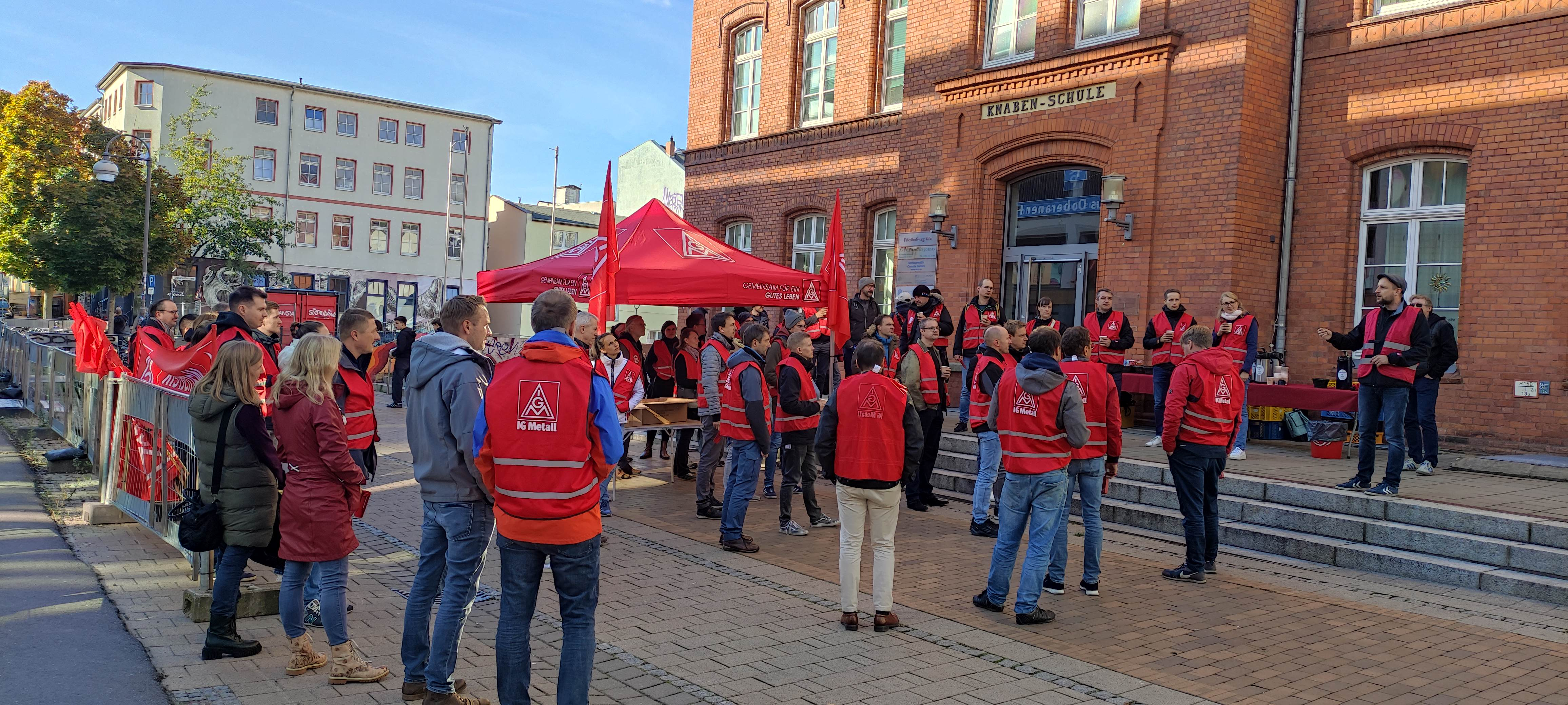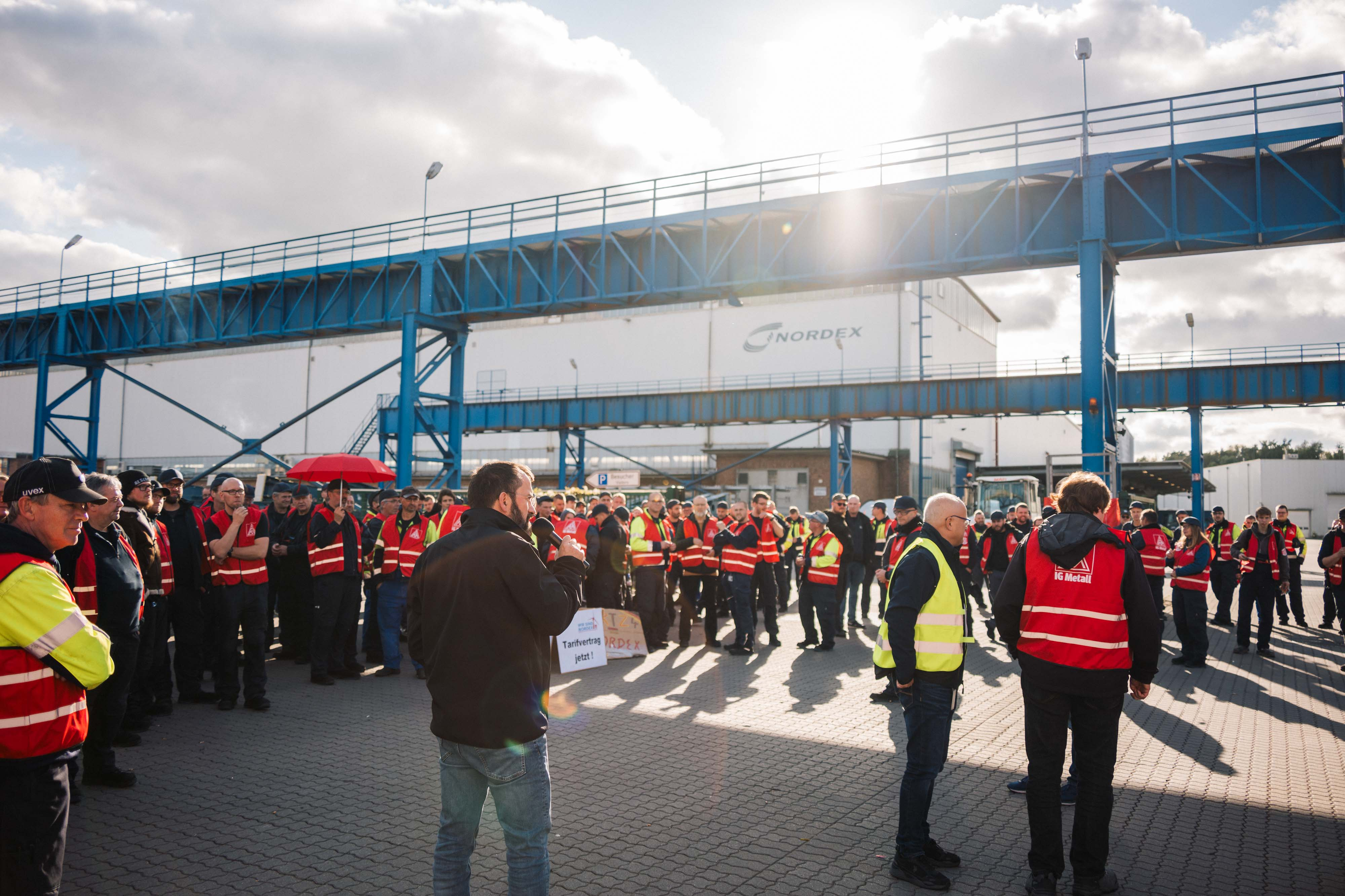 Die IG Metall rief die rund 1000 Beschäftigten bei der Nordex am 18.10.2023 zum Warnstreik auf. Der Streik fand an drei Standorten von 13:45 bis 15:45 Uhr in Rostock statt.