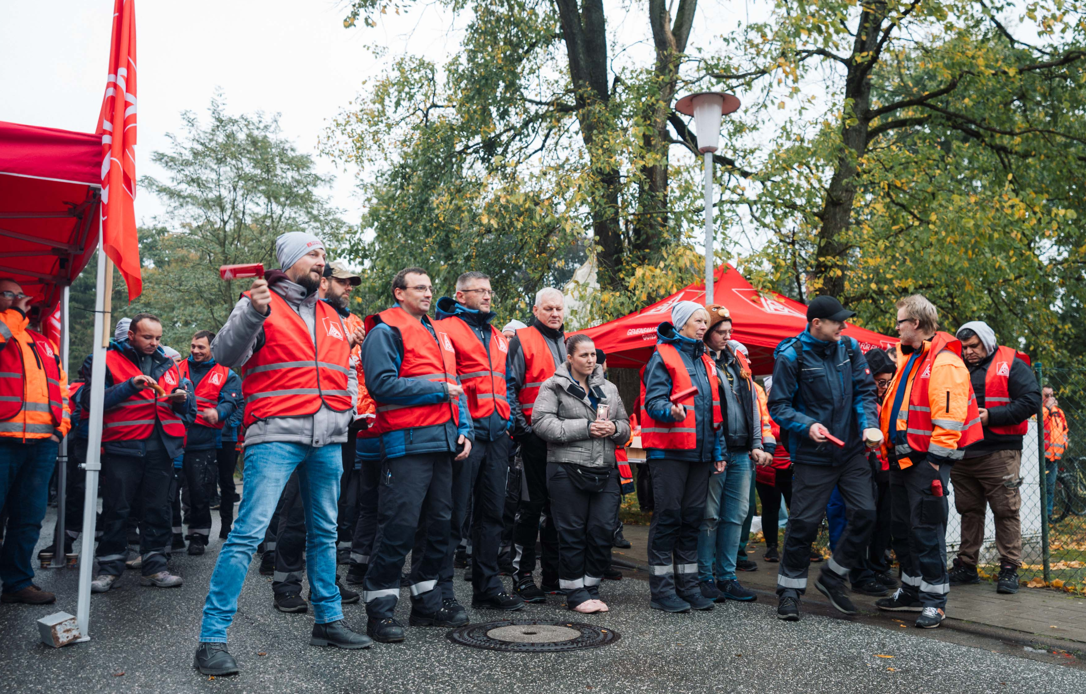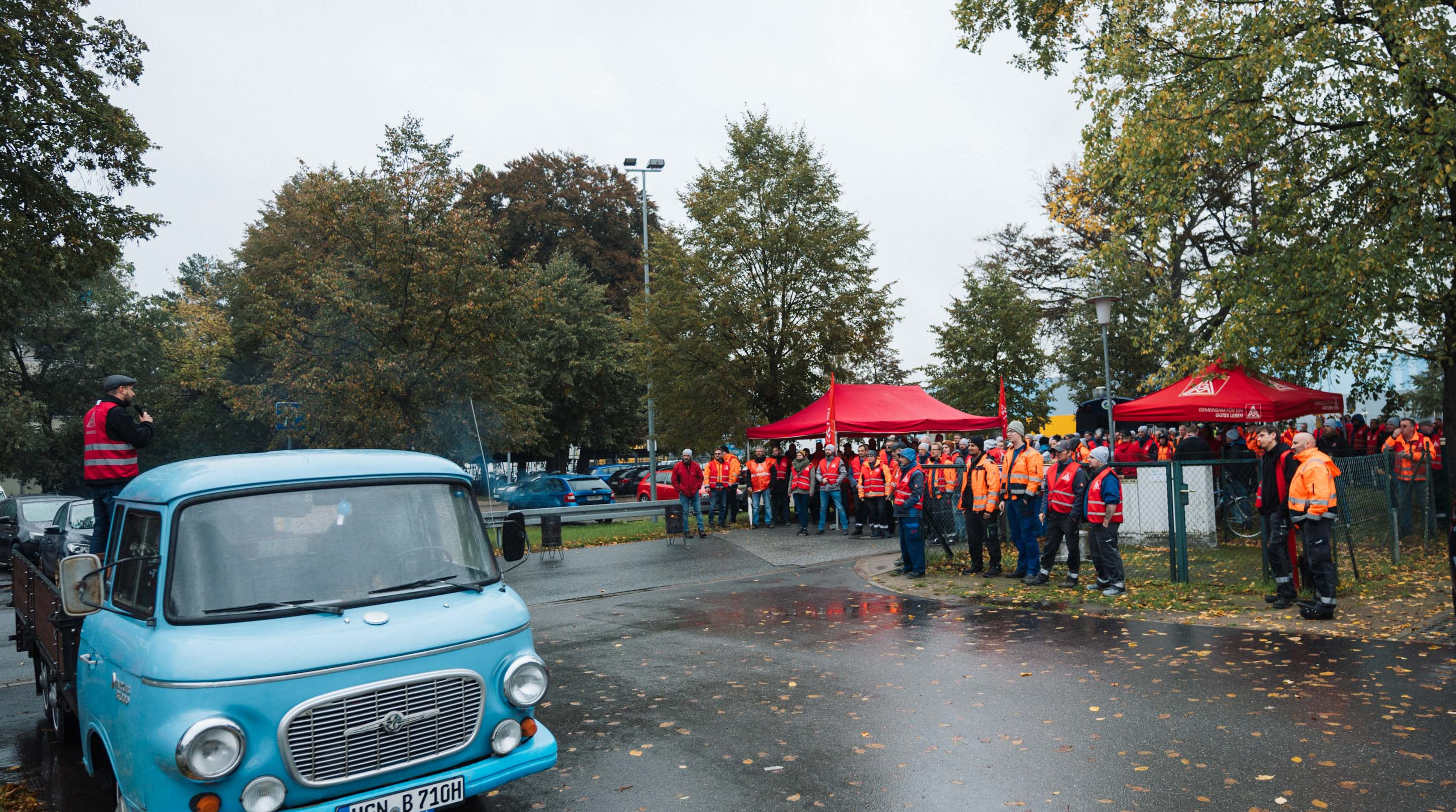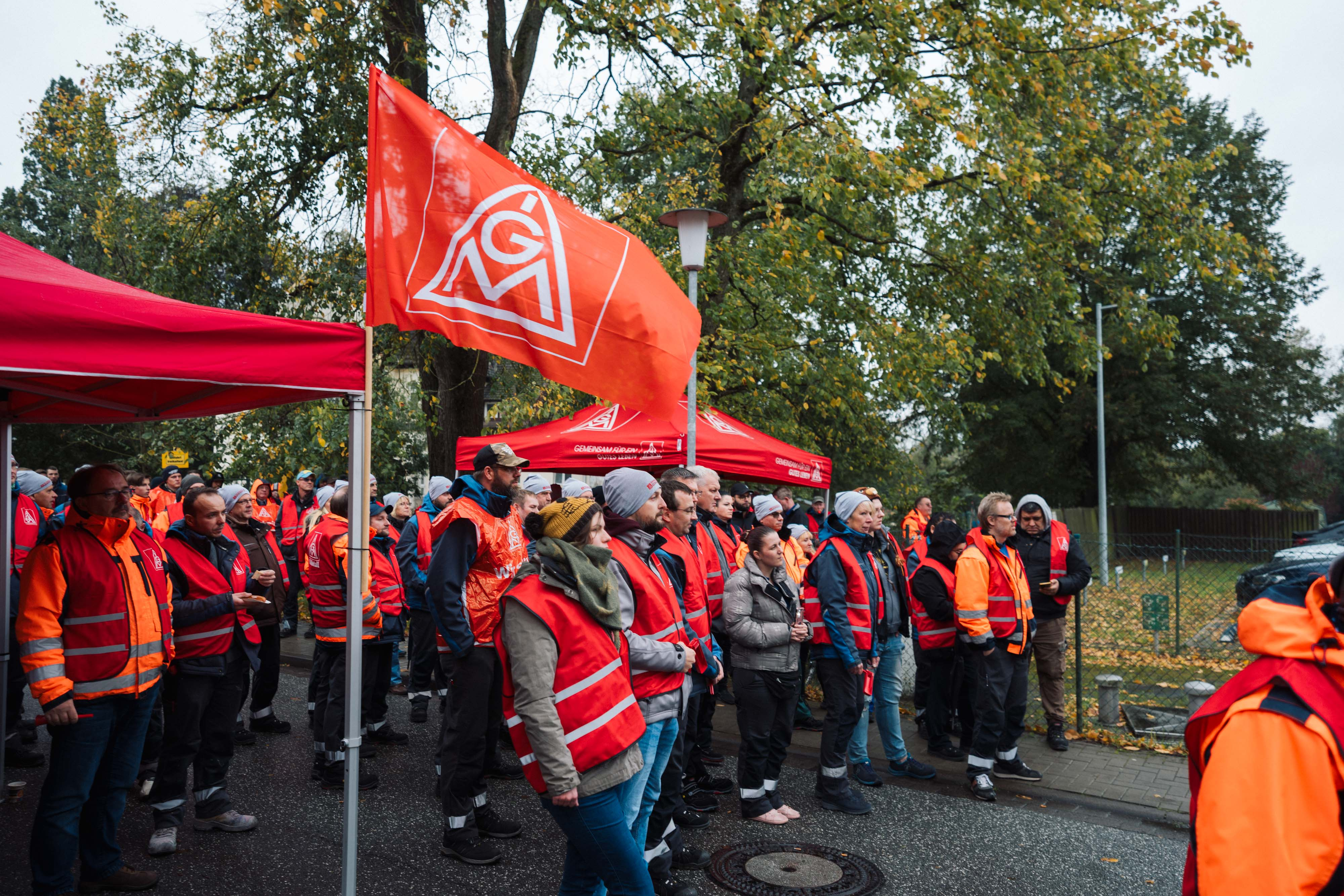 Die IG Metall rief die rund 450 Beschäftigten von Brüggen am Donnerstag, den 19.10.2023, zum Warnstreik auf. Von 12:00 bis 16 Uhr wurde vor dem Werktor gestreikt.